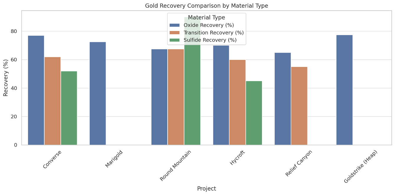 - Grind Sensitivity: Not required for oxide material; deeper sulfide zones may benefit from finer crushing in future mill scenarios.