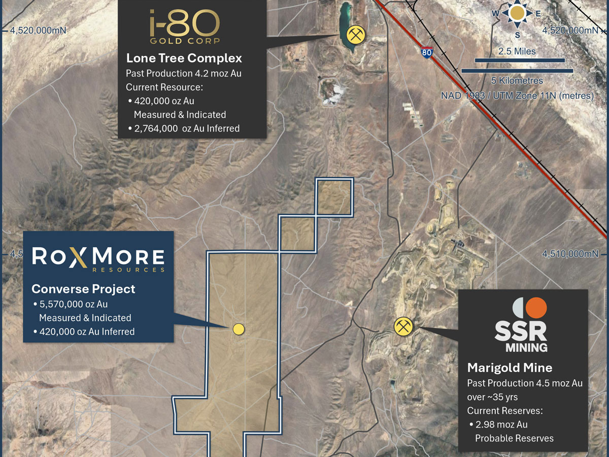 Roxmore Resources controls the Converse Gold Project — nearly 6 million ounces of gold on the legendary Battle Mountain trend. One of the largest undeveloped gold deposits in the U.S. not owned by a major exploration company.
