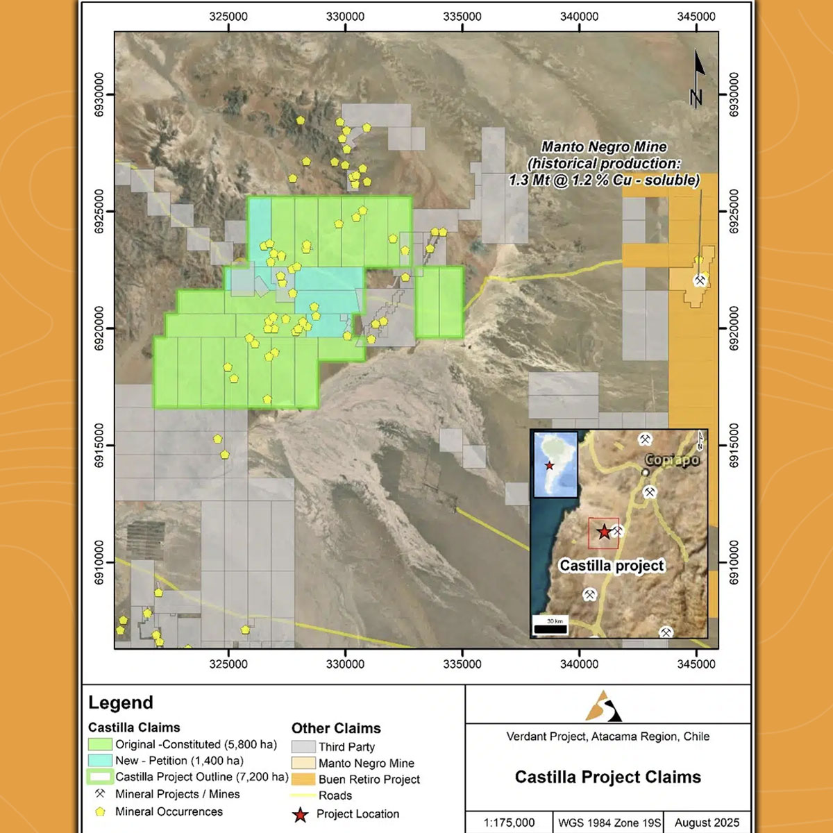 Both properties sit within Chile’s Atacama mining corridorhost to world-class operations by Lundin Mining, Capstone Copper, and BHP, with year-round access and existing infrastructure.